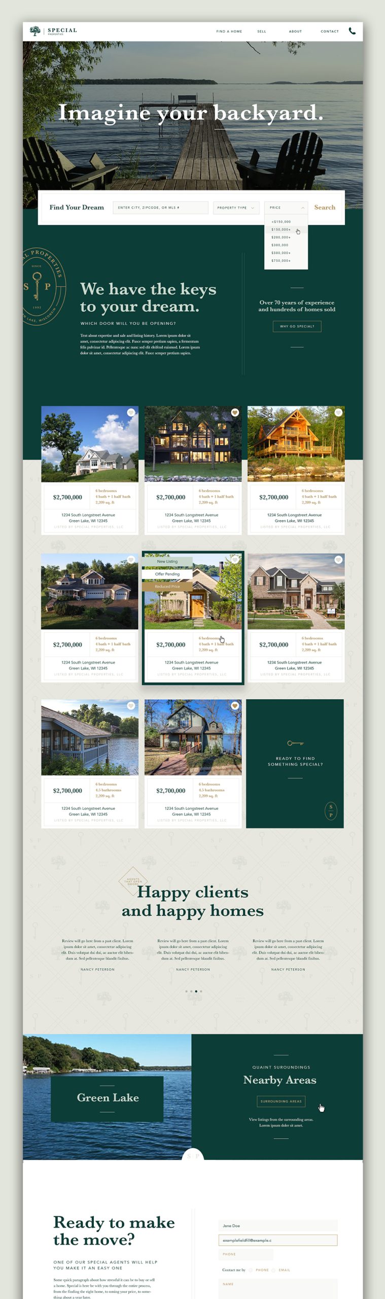 Special Properties is a familiar face in the small Green Lake community. Clients trust the small team with their family’s most precious heirlooms: their homes. Whether clients are looking to buy or sell, they reach out to their trusted neighbors to guide them on their journey. Special’s new visual brand embraces the company’s well-known tree symbol as well as a refined palette. Light-hearted and friendly copywriting is paired with clean and approachable design that was inspired by the quaintness of Green Lake, Wisconsin itself.
